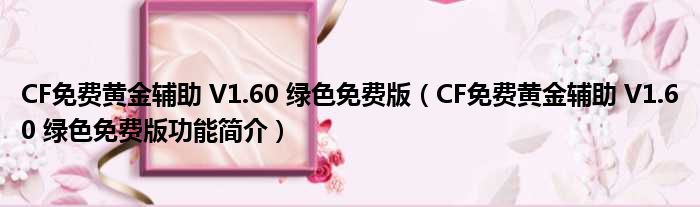 CF免费黄金辅助 V1.60 绿色免费版(CF免费黄金辅助 V1.60 绿色免费版功能简介)