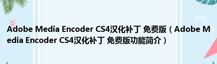 Adobe Media Encoder CS4汉化补丁 免费版(Adobe Media Encoder CS4汉化补丁 免费版功能简介)