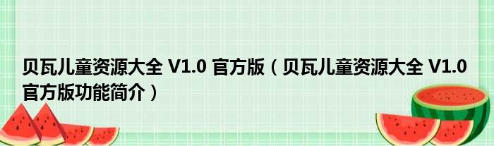 贝瓦儿童资源大全 V1.0 官方版(贝瓦儿童资源大全 V1.0 官方版功能简介)