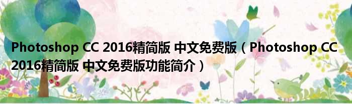 导读 大家好,关于Photoshop CC 2016精简版 中文免费版,Photoshop CC 2016精简版 中文免费版功能简介这个很多人还不知道,小勒来为大家解答