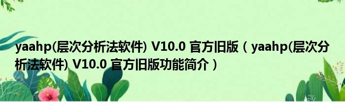 yaahp(层次分析法软件) V10.0 官方旧版(yaahp(层次分析法软件) V10.0 官方旧版功能简介)