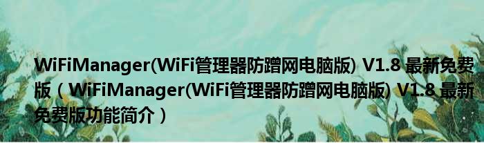 WiFiManager(WiFi管理器防蹭网电脑版) V1.8 最新免费版(WiFiManager(WiFi管理器防蹭网电脑版) V1.8 最新免费版功能简介)
