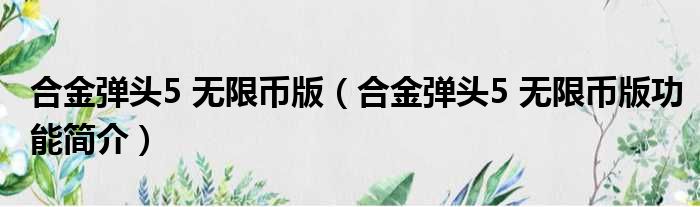 合金弹头5 无限币版(合金弹头5 无限币版功能简介)