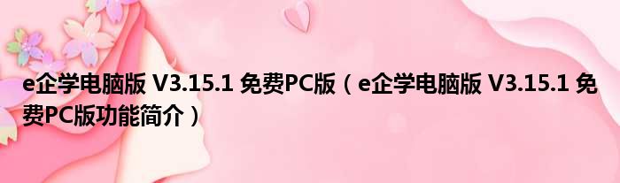 e企学电脑版 V3.15.1 免费PC版(e企学电脑版 V3.15.1 免费PC版功能简介)