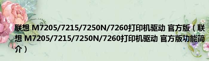 联想 M7205/7215/7250N/7260打印机驱动 官方版(联想 M7205/7215/7250N/7260打印机驱动 官方版功能简介)