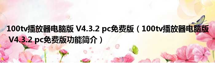 100tv播放器电脑版 V4.3.2 pc免费版(100tv播放器电脑版 V4.3.2 pc免费版功能简介)