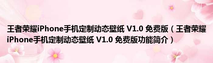 王者荣耀iPhone手机定制动态壁纸 V1.0 免费版(王者荣耀iPhone手机定制动态壁纸 V1.0 免费版功能简介)