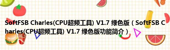SoftFSB Charles(CPU超频工具) V1.7 绿色版(SoftFSB Charles(CPU超频工具) V1.7 绿色版功能简介)