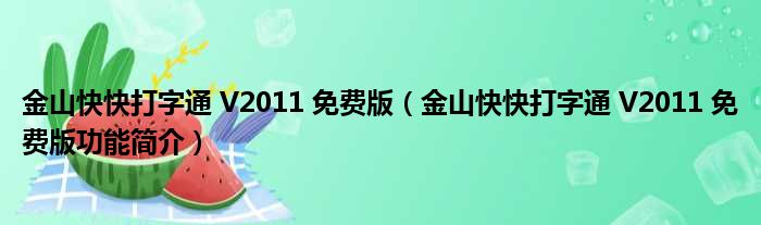 金山快快打字通 V2011 免费版(金山快快打字通 V2011 免费版功能简介)
