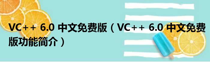 VC++ 6.0 中文免费版(VC++ 6.0 中文免费版功能简介)
