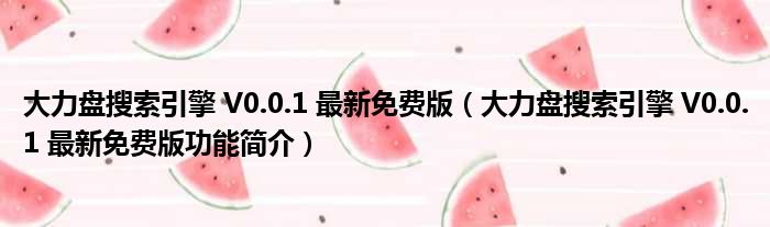 导读 大家好,关于大力盘搜索引擎 V0 0 1 最新免费版,大力盘搜索引擎 V0 0 1 最新免费版功能简介这个很多人还不知道,小勒来为大家解答以上的