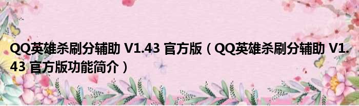 QQ英雄杀刷分辅助 V1.43 官方版(QQ英雄杀刷分辅助 V1.43 官方版功能简介)