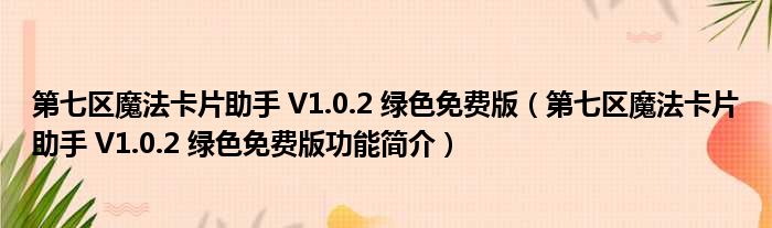 第七区魔法卡片助手 V1.0.2 绿色免费版(第七区魔法卡片助手 V1.0.2 绿色免费版功能简介)