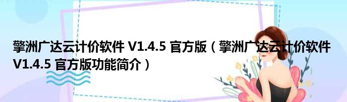 擎洲广达云计价软件 V1.4.5 官方版(擎洲广达云计价软件 V1.4.5 官方版功能简介)