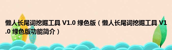 导读 大家好,关于懒人长尾词挖掘工具 V1 0 绿色版,懒人长尾词挖掘工具 V1 0 绿色版功能简介这个很多人还不知道,小勒来为大家解答以上的问题
