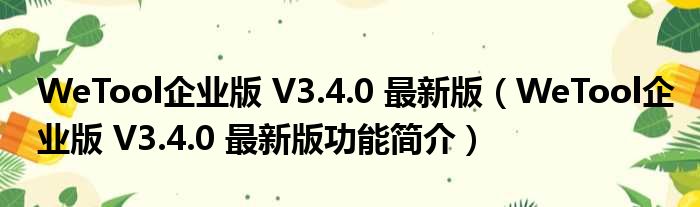 WeTool企业版 V3.4.0 最新版(WeTool企业版 V3.4.0 最新版功能简介)