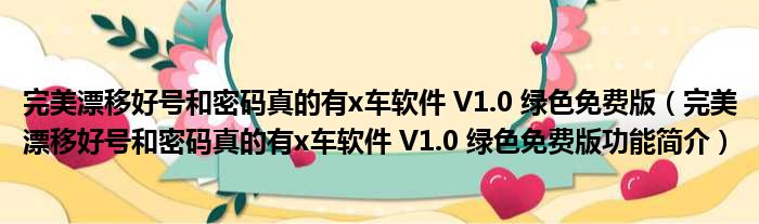 完美漂移好号和密码真的有x车软件 V1.0 绿色免费版(完美漂移好号和密码真的有x车软件 V1.0 绿色免费版功能简介)