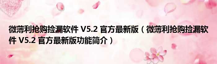 微薄利抢购捡漏软件 V5.2 官方最新版(微薄利抢购捡漏软件 V5.2 官方最新版功能简介)