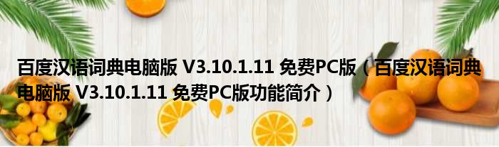 百度汉语词典电脑版 V3.10.1.11 免费PC版(百度汉语词典电脑版 V3.10.1.11 免费PC版功能简介)
