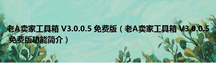 导读 大家好,关于老A卖家工具箱 V3 0 0 5 免费版,老A卖家工具箱 V3 0 0 5 免费版功能简介这个很多人还不知道,小勒来为大家解答以上的问题,