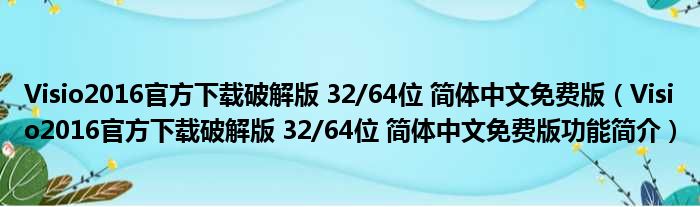 Visio2016官方下载破解版 32/64位 简体中文免费版(Visio2016官方下载破解版 32/64位 简体中文免费版功能简介)