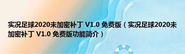 实况足球2020未加密补丁 V1.0 免费版(实况足球2020未加密补丁 V1.0 免费版功能简介)