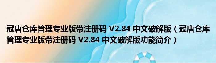 冠唐仓库管理专业版带注册码 V2.84 中文破解版(冠唐仓库管理专业版带注册码 V2.84 中文破解版功能简介)