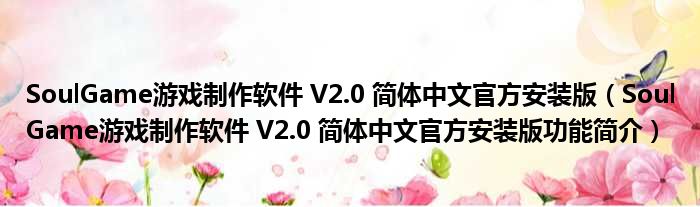 SoulGame游戏制作软件 V2.0 简体中文官方安装版(SoulGame游戏制作软件 V2.0 简体中文官方安装版功能简介)