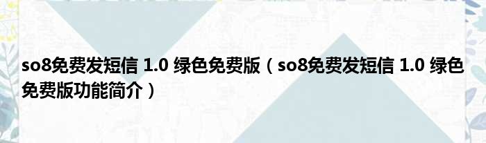 so8免费发短信 1.0 绿色免费版(so8免费发短信 1.0 绿色免费版功能简介)