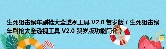 生死狙击猴年刷枪大全透视工具 V2.0 贺岁版(生死狙击猴年刷枪大全透视工具 V2.0 贺岁版功能简介)