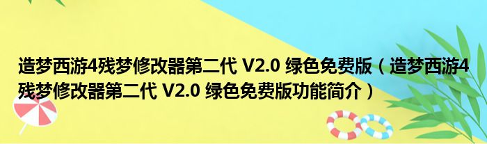 导读 大家好,关于造梦西游4残梦修改器第二代 V2 0 绿色免费版,造梦西游4残梦修改器第二代 V2 0 绿色免费版功能简介这个很多人还不知道,小勒