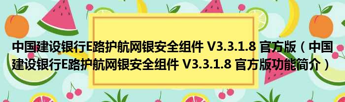 中国建设银行E路护航网银安全组件 V3.3.1.8 官方版(中国建设银行E路护航网银安全组件 V3.3.1.8 官方版功能简介)