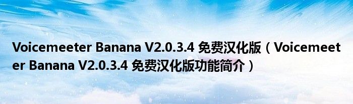 Voicemeeter Banana V2.0.3.4 免费汉化版(Voicemeeter Banana V2.0.3.4 免费汉化版功能简介)