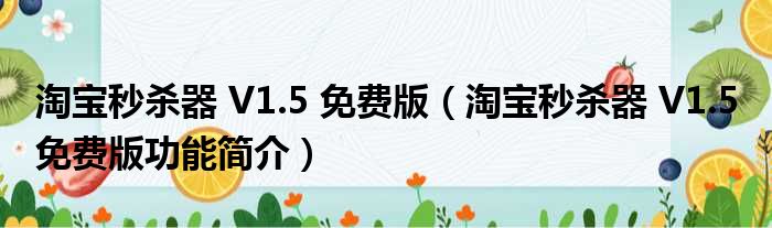 淘宝秒杀器 V1.5 免费版(淘宝秒杀器 V1.5 免费版功能简介)