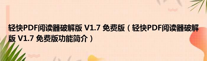 轻快PDF阅读器破解版 V1.7 免费版(轻快PDF阅读器破解版 V1.7 免费版功能简介)