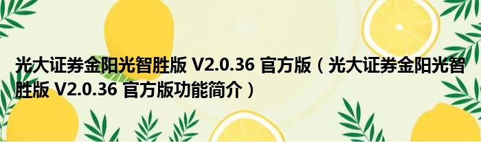 光大证券金阳光智胜版 V2.0.36 官方版(光大证券金阳光智胜版 V2.0.36 官方版功能简介)