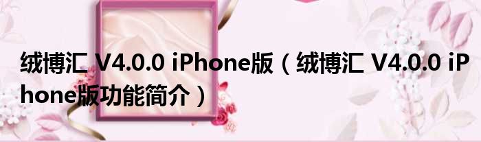 导读 大家好,关于绒博汇 V4 0 0 iPhone版,绒博汇 V4 0 0 iPhone版功能简介这个很多人还不知道,小勒来为大家解答以上的问题,现在让我们一起