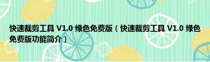 快速裁剪工具 V1.0 绿色免费版(快速裁剪工具 V1.0 绿色免费版功能简介)