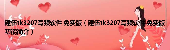 导读 大家好,关于建伍tk3207写频软件 免费版,建伍tk3207写频软件 免费版功能简介这个很多人还不知道,小勒来为大家解答以上的问题,现在让我们