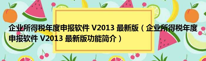 导读 大家好,关于企业所得税年度申报软件 V2013 最新版,企业所得税年度申报软件 V2013 最新版功能简介这个很多人还不知道,小勒来为大家解答