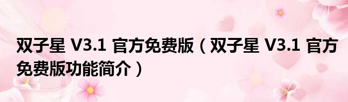 双子星 V3.1 官方免费版(双子星 V3.1 官方免费版功能简介)