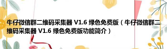 牛仔微信群二维码采集器 V1.6 绿色免费版(牛仔微信群二维码采集器 V1.6 绿色免费版功能简介)