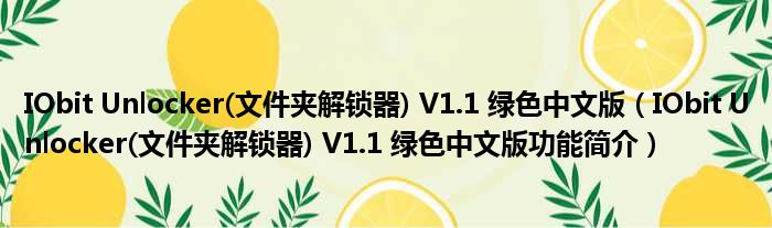 IObit Unlocker(文件夹解锁器) V1.1 绿色中文版(IObit Unlocker(文件夹解锁器) V1.1 绿色中文版功能简介)