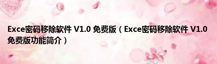 Exce密码移除软件 V1.0 免费版(Exce密码移除软件 V1.0 免费版功能简介)