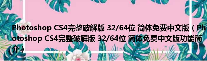 Photoshop CS4完整破解版 32/64位 简体免费中文版(Photoshop CS4完整破解版 32/64位 简体免费中文版功能简介)