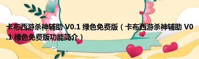卡布西游杀神辅助 V0.1 绿色免费版(卡布西游杀神辅助 V0.1 绿色免费版功能简介)