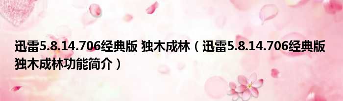 迅雷5.8.14.706经典版 独木成林(迅雷5.8.14.706经典版 独木成林功能简介)