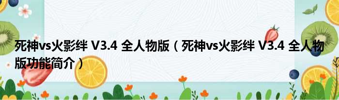 死神vs火影绊 V3.4 全人物版(死神vs火影绊 V3.4 全人物版功能简介)