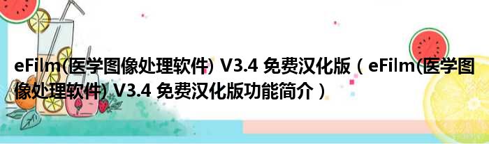 eFilm(医学图像处理软件) V3.4 免费汉化版(eFilm(医学图像处理软件) V3.4 免费汉化版功能简介)