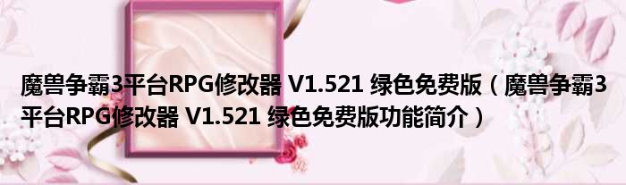 魔兽争霸3平台RPG修改器 V1.521 绿色免费版(魔兽争霸3平台RPG修改器 V1.521 绿色免费版功能简介)